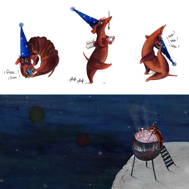 Susana Rodríguez a veces también firma su obra como Susanaimagina, ya que lo que más le gusta de su trabajo es materializar las ideas que pasan por su cabeza. Aunque nació en Madrid, se siente de muchos sitios. Es licenciada en Bellas Artes y ha trabajado como diseñadora gráfica e ilustradora. Su técnica mixta le permite jugar con acrílicos, acuarela, lápices de colores y demás técnicas para crear sus fabulosas ilustraciones.