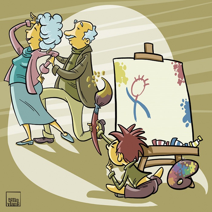 Tatio Viana (Madrid, 1964) nació con un lápiz en la mano. Su técnica es digital, aunque le gusta usarla como si fuese tradicional. Ha trabajado para publicidad, libro de texto y álbum ilustrado (publicados tanto en España como en el Reino Unido o EE.UU.). Le han influido artistas como Norman Rockwell, Sempé, Ana Juan y Daniel Torres, entre otros. ES/EN/CAT